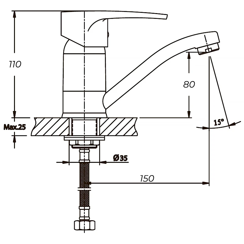 - Высота смесителя 10-15