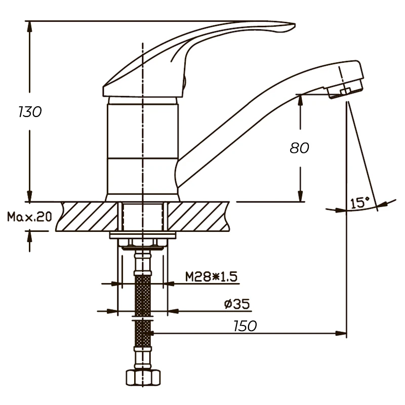 - Высота смесителя 10-15