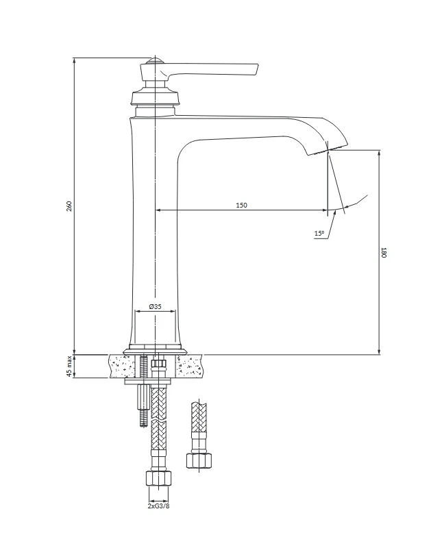 змішувач для умивальника Omnires Armance chrome, високий (AM5212CR)