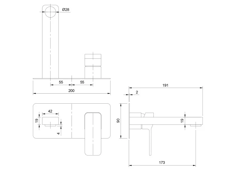 змішувач для умивальника Omnires Slide прихованого монтажу graphite (SL7715GR)