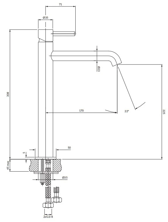 - Длина вылива, мм 170