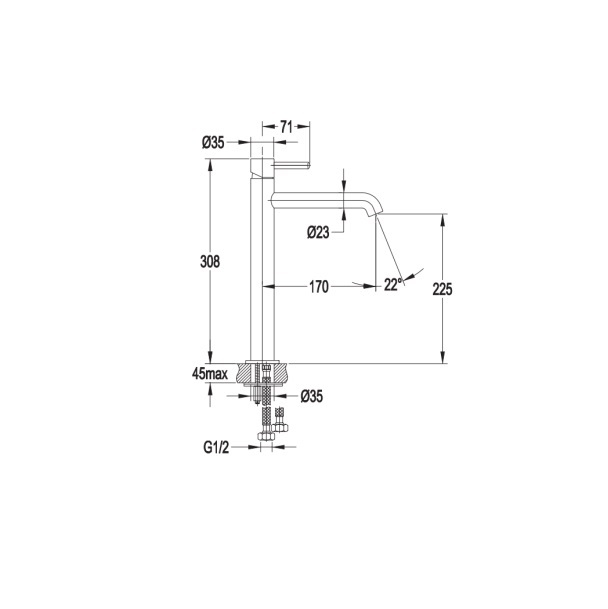 - Длина излива, мм 170