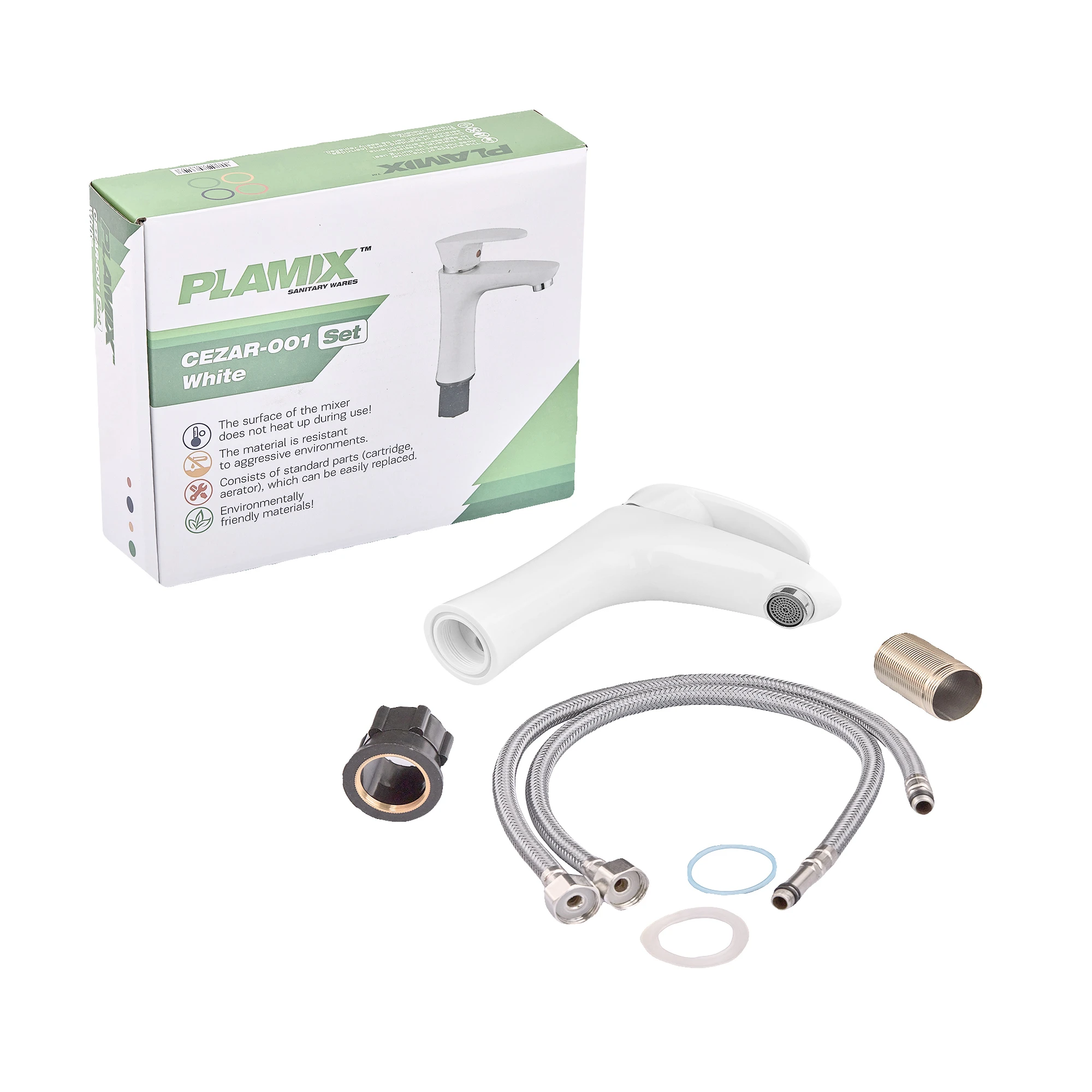 Змішувач для умивальника Plamix Cezar-001 SET White (з підведенням) (PM0661)