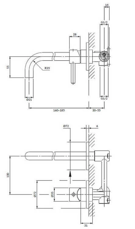змішувач для умивальника прихованого монтажу Omnires Y black /gold (Y1215HBLGL)