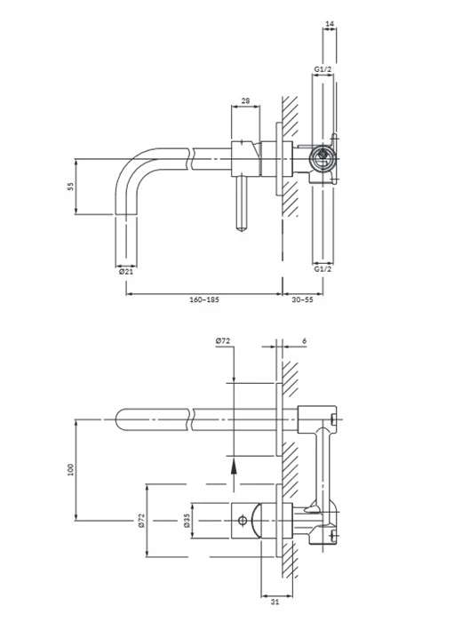 змішувач для умивальника прихованого монтажу Omnires Y brushed copper (Y1215HCPB)