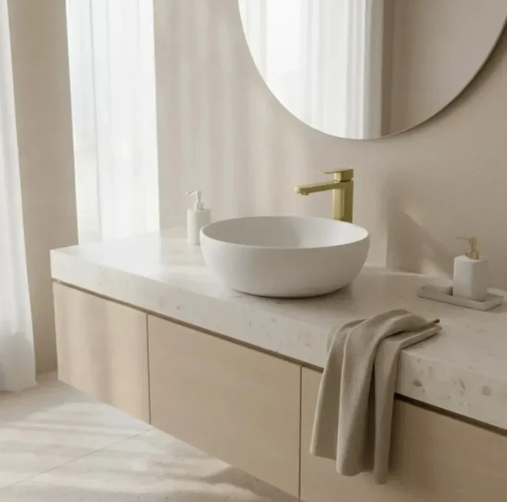 змішувач для умивальника Rea Arlo brushed gold, високий (REA-B0977)