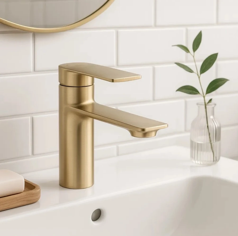 змішувач для умивальника Rea Storm brushed gold низький (REA-B7960)