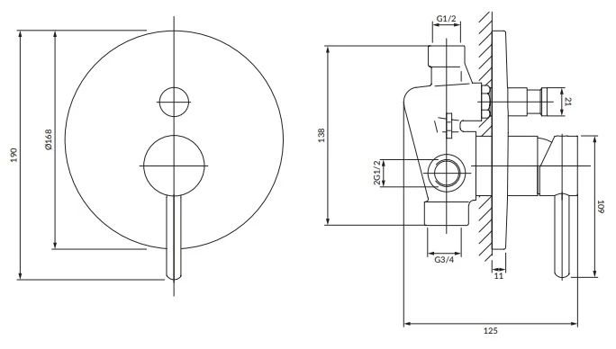 змішувач для ванни і душу прихованого монтажу Omnires Y gold (Y1235GL)