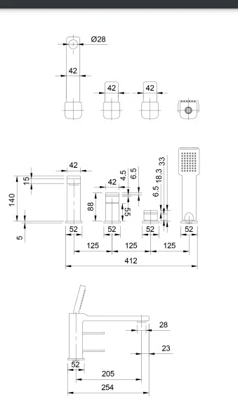 змішувач для ванни Omnires Slide на 4 отвори chrome (SL7732CR)