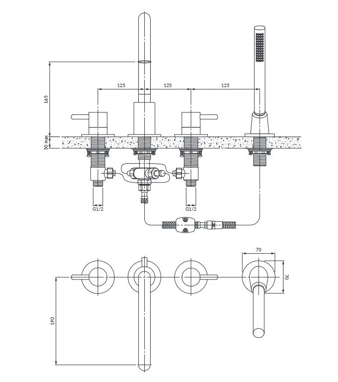 змішувач для ванни Omnires Y brushed copper (Y1232CPB)