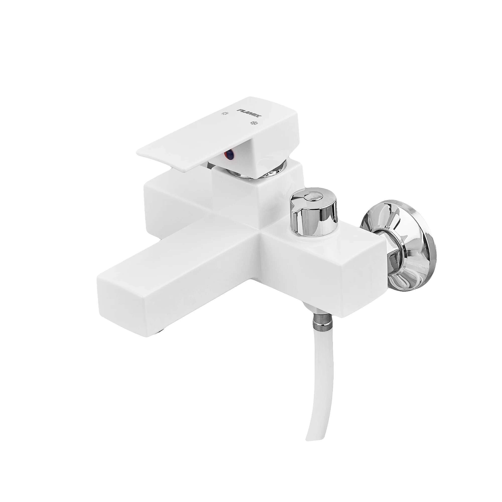 Змішувач для ванни Plamix Kubus-009 EURO SET White (з шлангом, лійкою та кронштейном) (PM0673)