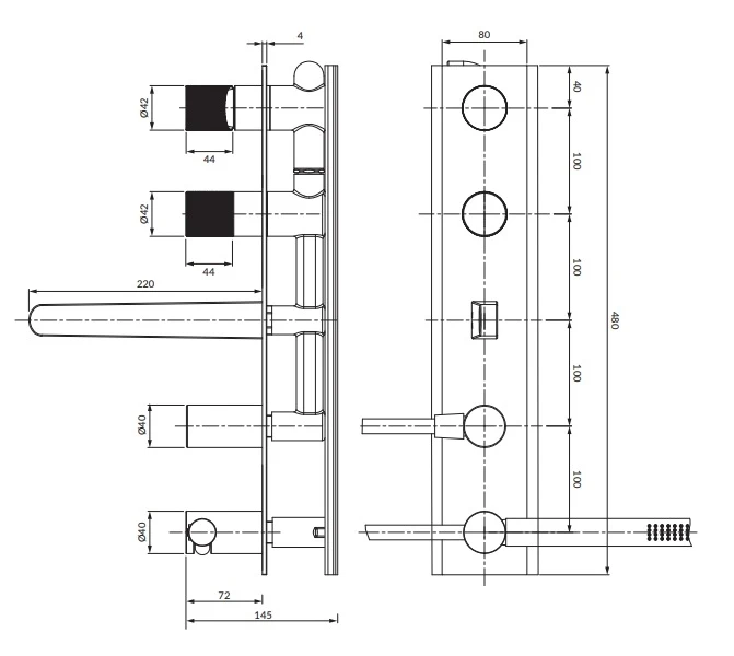 змішувач для ванни та душу Omnires Contour на 5 отворів, прихованого монтажу, brushed copper (CT8037