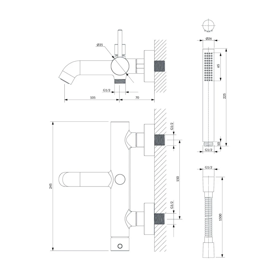 змішувач для ванни та душу Omnires Y brushed brass (Y1231BSB)