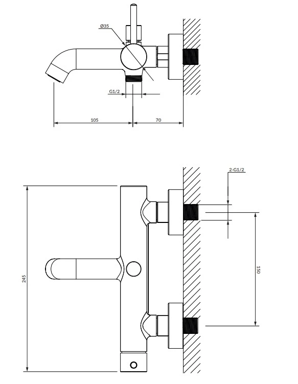 змішувач для ванни та душу Omnires Y brushed copper (Y1231CPB)
