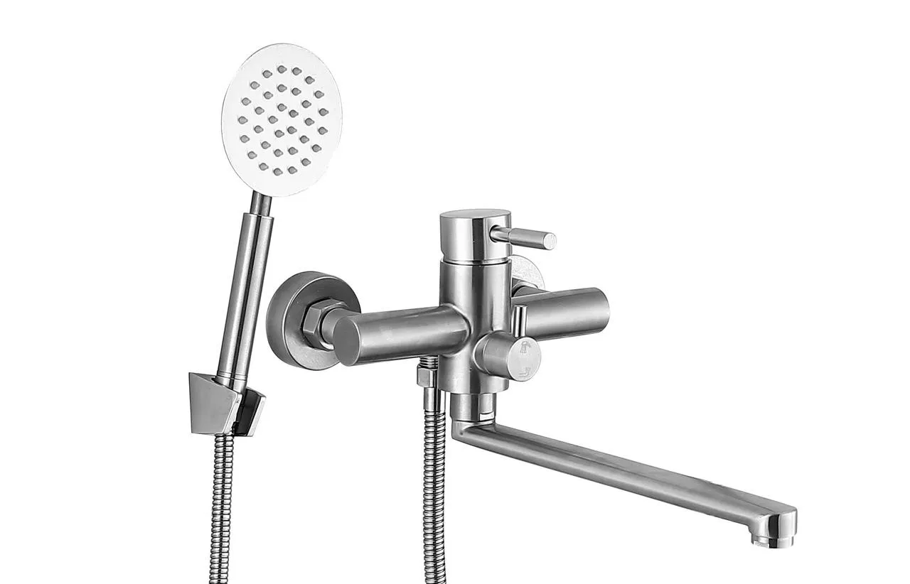 Материал: пищевая нержавеющая сталь марки SUS304. Тип корпуса: однорычажный, с переключателем кран/душ. Излив: длинный, поворотный. Длина излива: 32 см. Комплектация: смеситель, крепления, шланг для душа 150 см, лейка