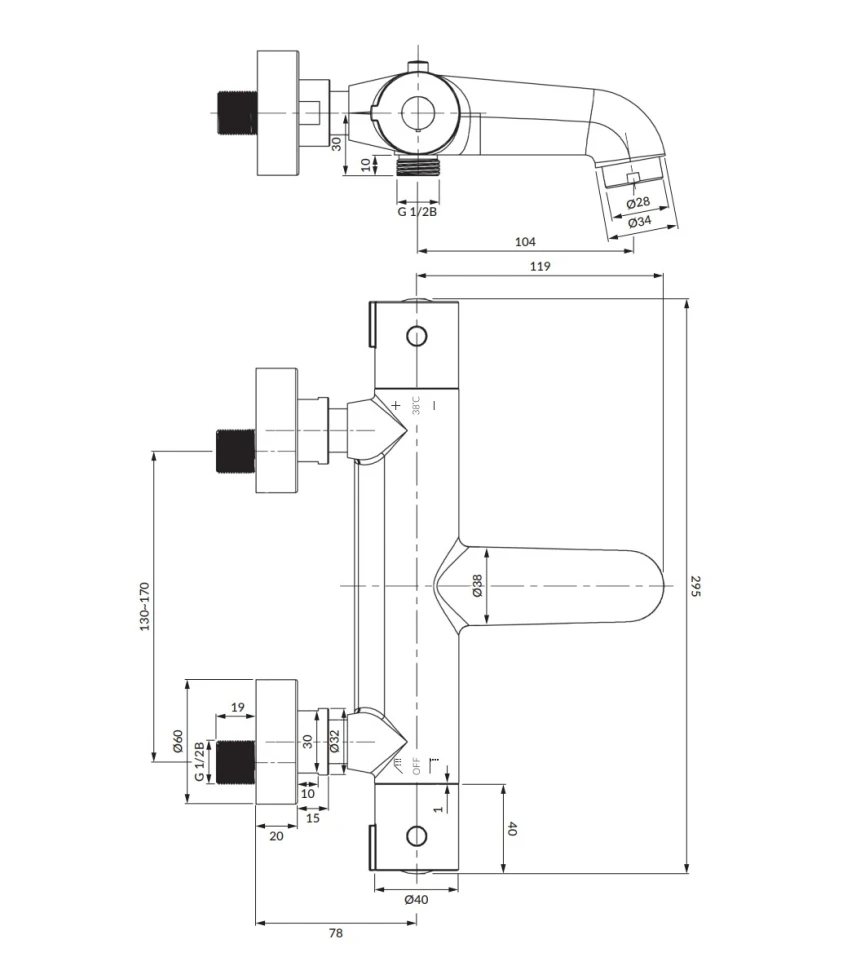 змішувач для ванни з термостатом Omnires Y polished chrome (Y1236-NCR)