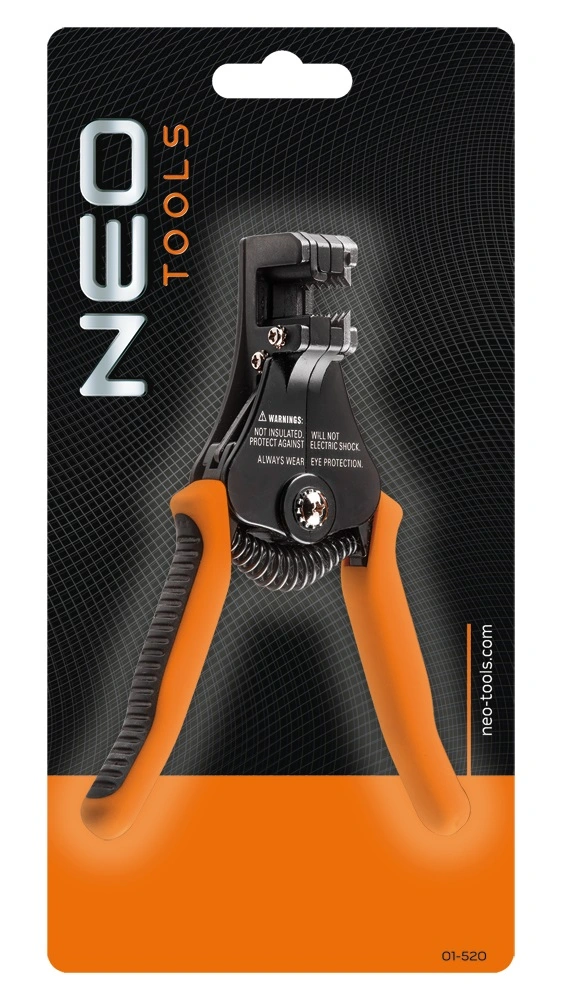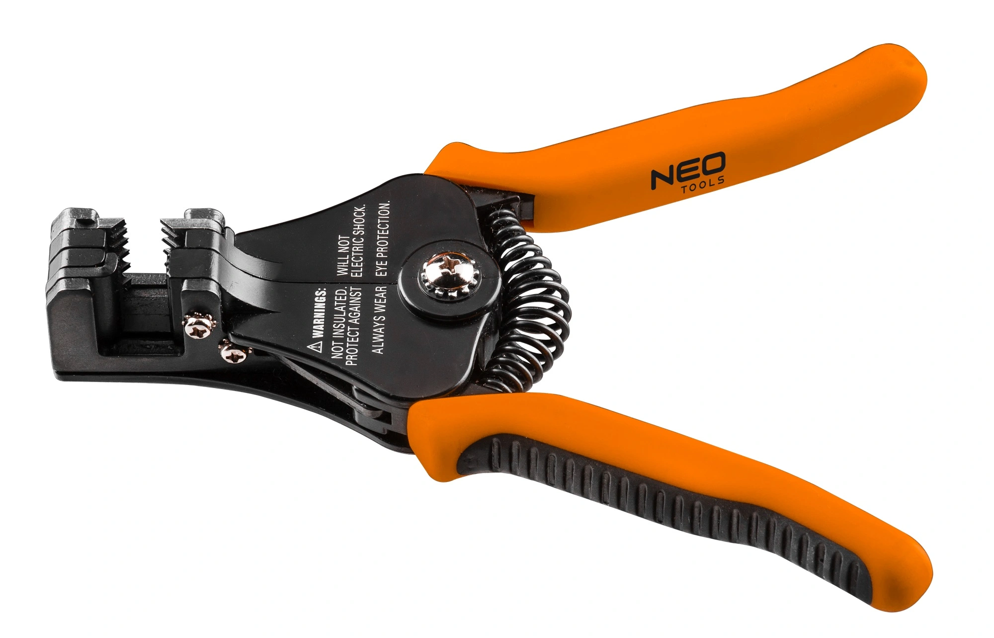 Автоматичний знімач ізоляції NEO TOOLS, довжина 175 мм, для проводів перетином від 1 мм до 3.2 мм². Функція регулювання довжини. Губки з високосортної швидкорізальної сталі SK5 гарантують міцність і гостроту знімача. Двокомпонентні рукоятки з антиковзаючим матеріалом TPR і ABS підвищують комфорт роботи. Знімач оснащений пружиною, яка зменшує навантаження на долоню і полегшує роботу з інструментом. Бренд NEO виправдовує очікування професіоналів.
