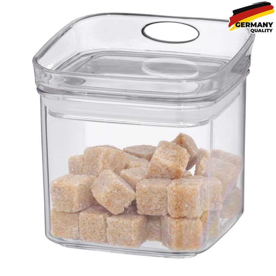 Ємності для сипучих KELA JULE якраз з розряду "дешево, надійно і практично". Вони виготовлені з високоякісного, міцного MS-пластика, що стійкий не тільки до механічних пошкоджень, але й до шкідливого впливу ультрафіолету. Ємності ці прості і ергономічні. Їх правильна прямокутна форма і передбачена конструкцією можливість штабелювання, дозволяють раціонально використовувати внутрішній простір кухонних шафок. Кришки ємностей KELA JULE герметично прилягають до стінок, що не тільки запобігає потраплянню вологи всередину контейнера, але і надійно захищає сипучі продукти від всіляких "комірних шкідників".