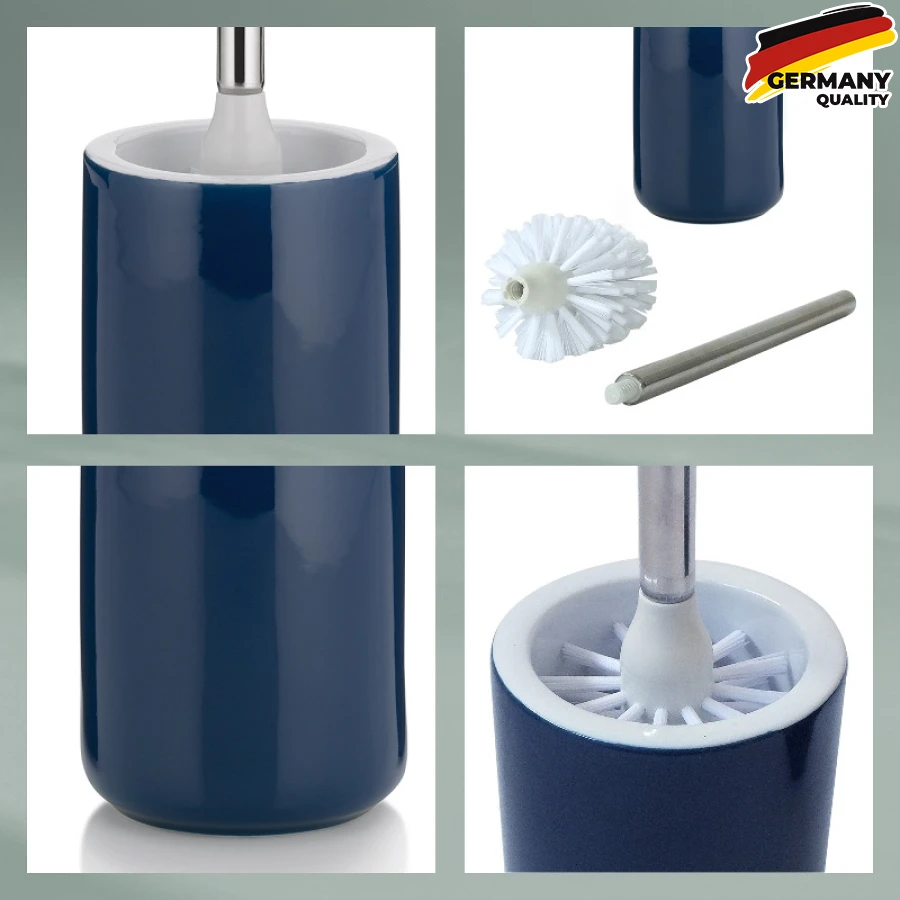 Сучасний туалетний гарнітур у сучасних тонах. Туалетний набір Isabella виконаний у білому кольорі всередині та у бензиновому, кашемірово-коричневому, білому або синьому індиго зовні. При висоті 46 см вони не займають дуже багато місця. Ручка щітки виготовлена із високоякісної нержавіючої сталі і, як і сама щітка La Brosse, може бути замінена та перезамовлена. У цій гарній серії для ванної кімнати ви знайдете відповідні аксесуари (дозатор для мила, чашка, мильниця), які допоможуть вам оформити ванну кімнату в єдиному стилі.