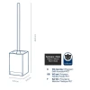 Відкритий туалетний гарнітур має квадратну основу. Насадку щітки можна відкрутити від пластикової ручки туалетної щітки та при необхідності замінити.