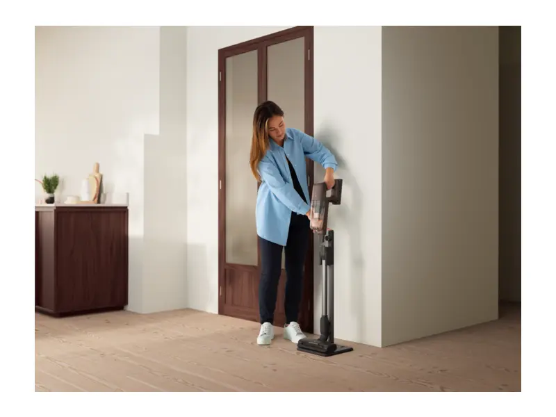 Одним рухом підключайте пилосос до зарядної станції й розпочинайте заряджання.