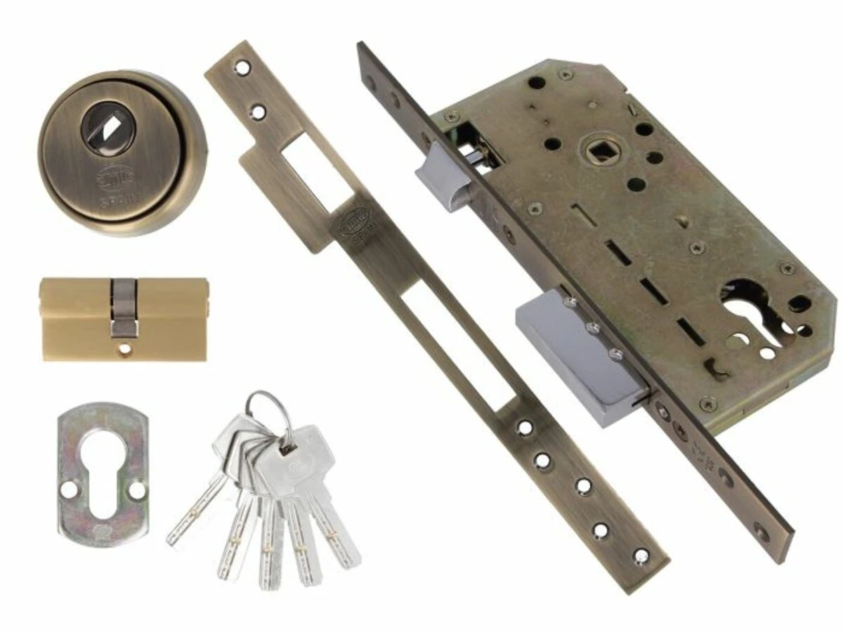 Замок AMIG 1 ригель мод.200 - 50/85 + броня м.31 + циліндр 60 мм Антик