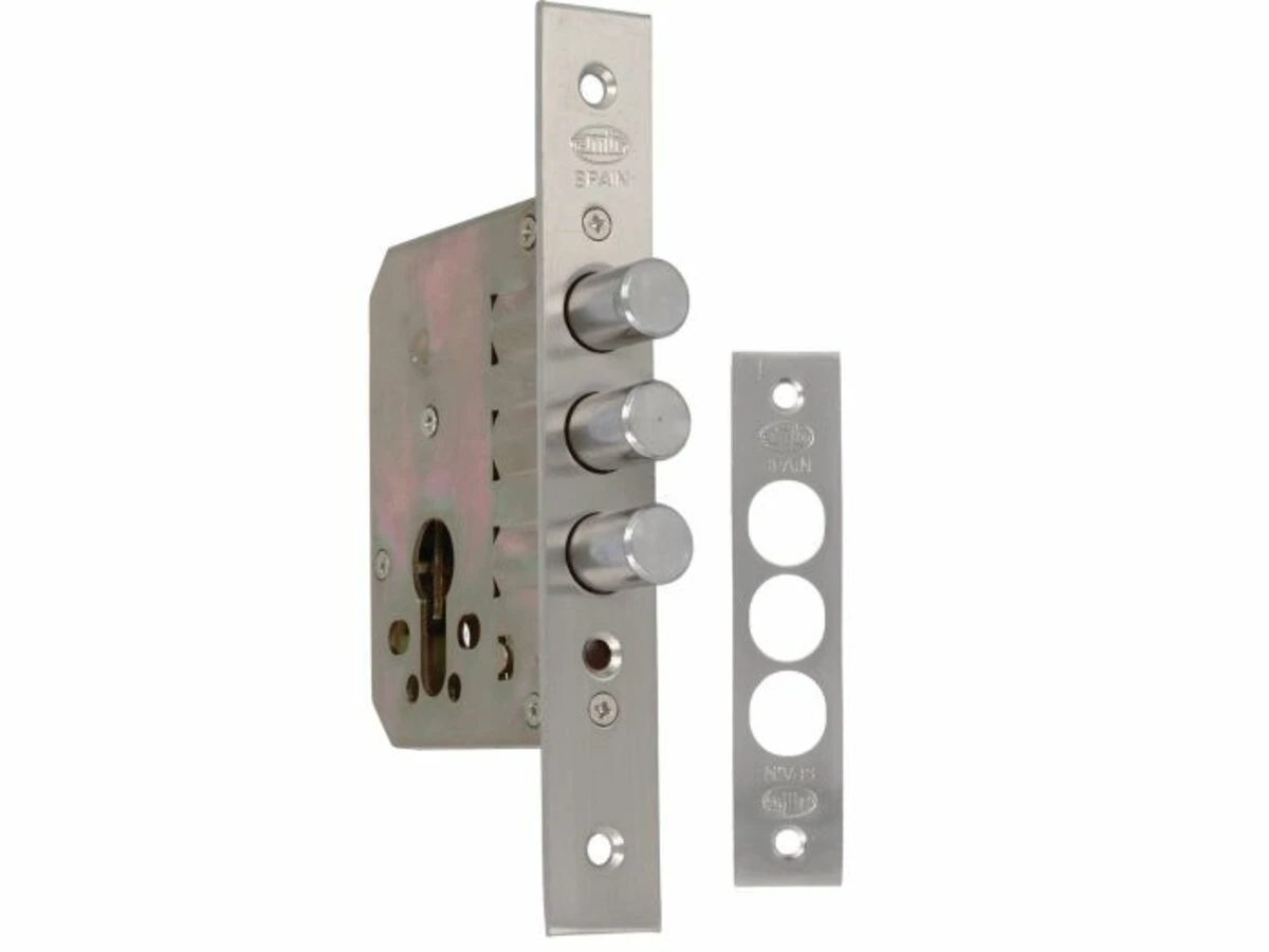 Замок сумісний із ручками, накладками та петлями у кольорах хром, матове срібло або сатин. Його можна встановити разом із основним врізним замком для підвищення рівня безпеки. Конструкція дозволяє використовувати циліндри євростандарту та легко проводити їх заміну без демонтажу корпусу.