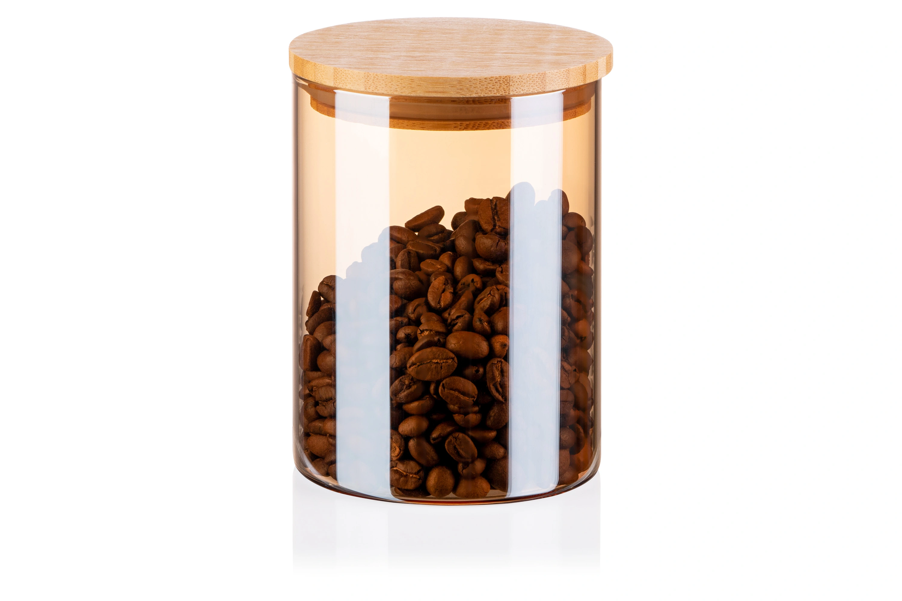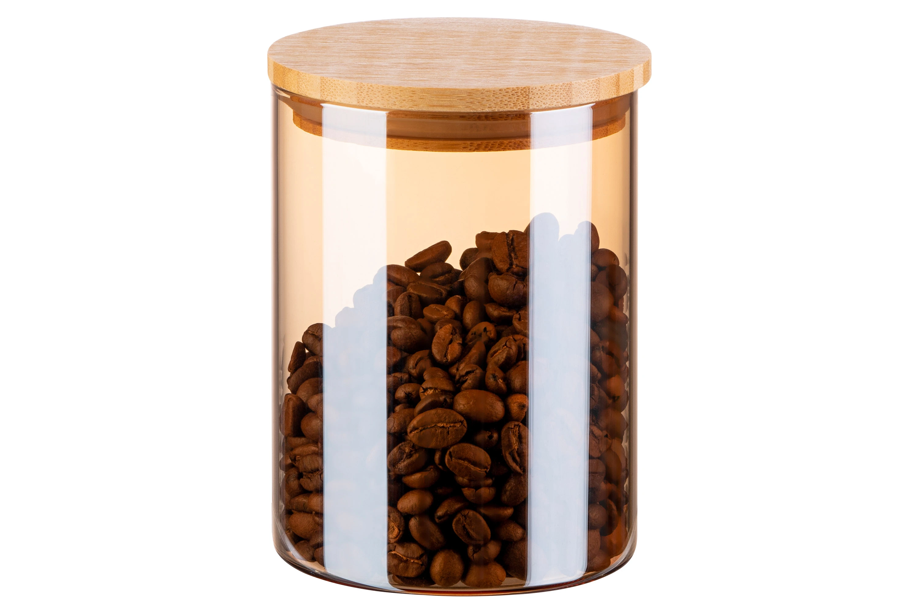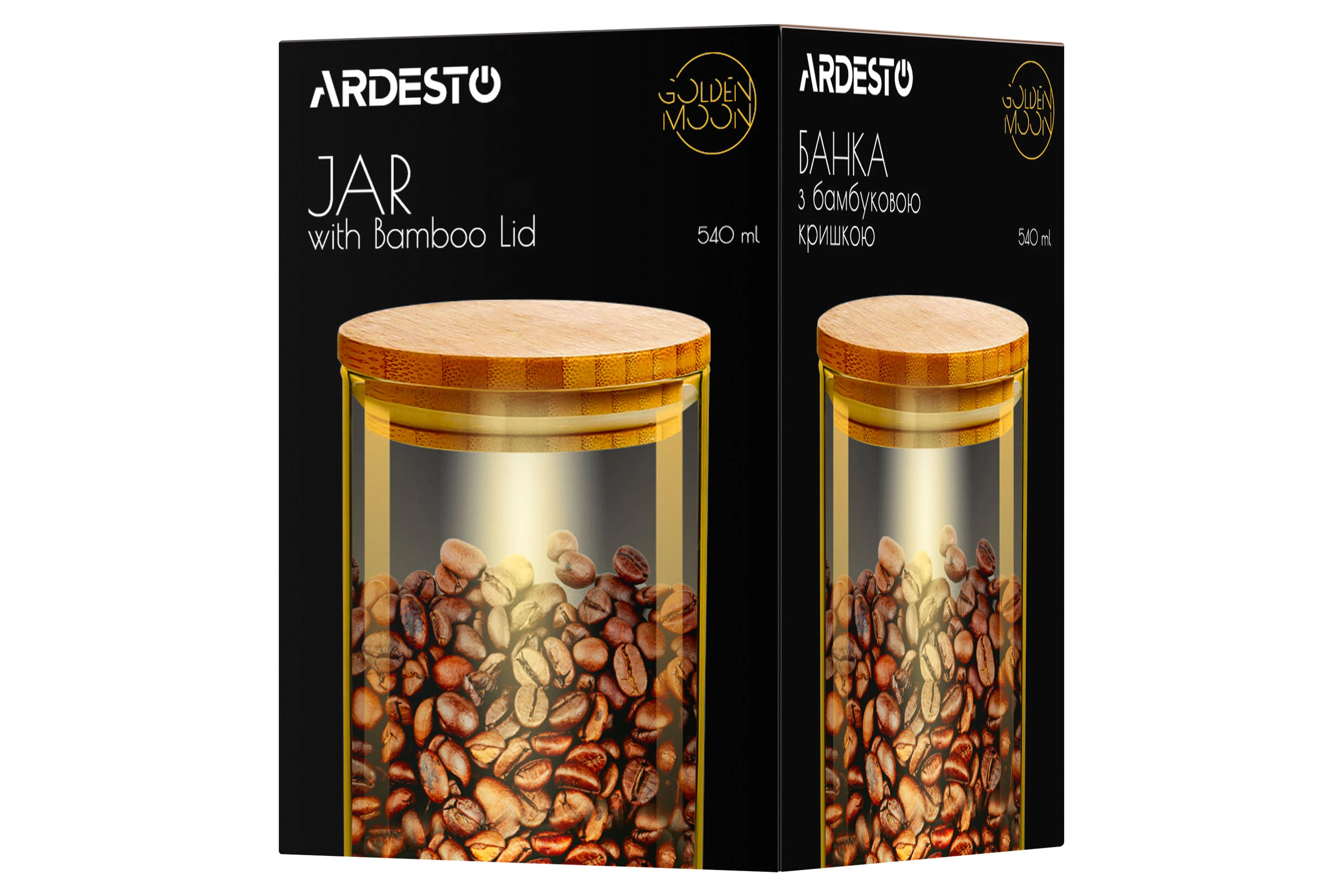 Банка для зберігання Ardesto Golden Moon, 540мл, скло, бамбук, кругла, золотистий