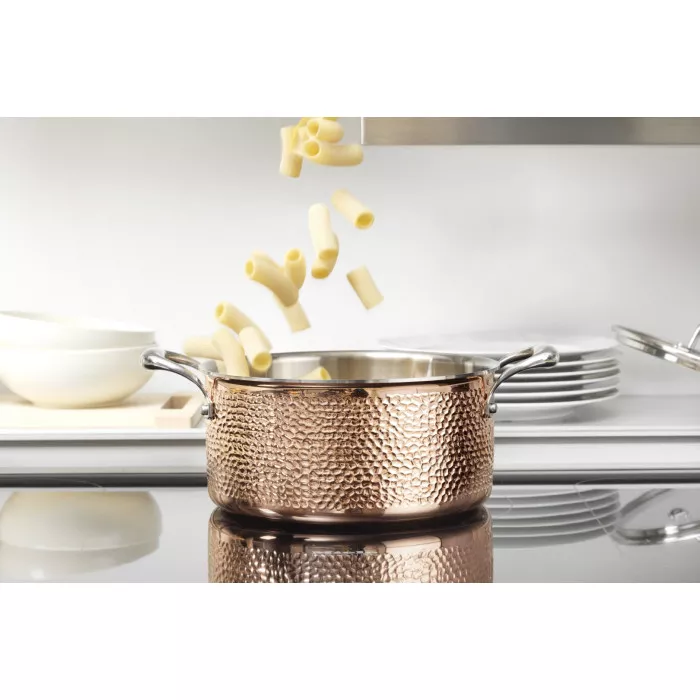 Ця каструля з нержавіючої сталі об'ємом 5.2 літра, створена у співпраці з італійським шеф-кухарем Карло Кракко, забезпечує рівномірний розподіл тепла та чудову якість приготування. Вона оснащена зручною кришкою, яка допомагає зберігати тепло, і підходить для приготування різноманітних страв. Каструля сумісна з усіма типами плит, включаючи індукційні.]]>