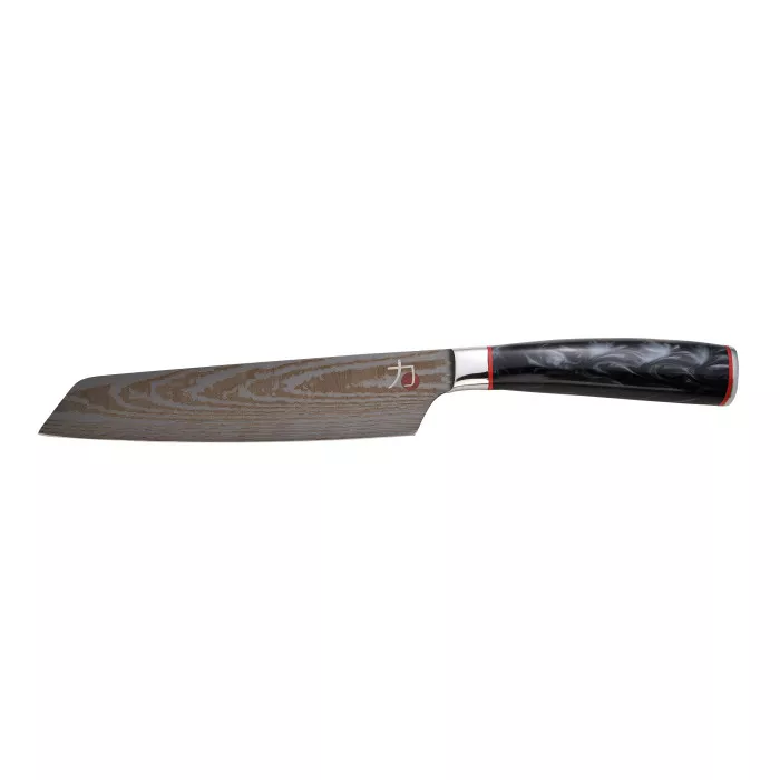 Ножі серії Tetsu відрізняються винятковою міцністю, виготовлені з високоякісної нержавіючої сталі та забезпечують максимальний контроль і впевненість під час приготування їжі. Леза мають антипригарне покриття з ефектом дамаської сталі, що забезпечує бездоганний кут різу та легке ковзання по продуктах.