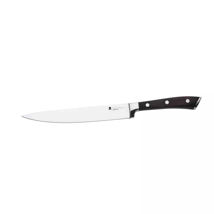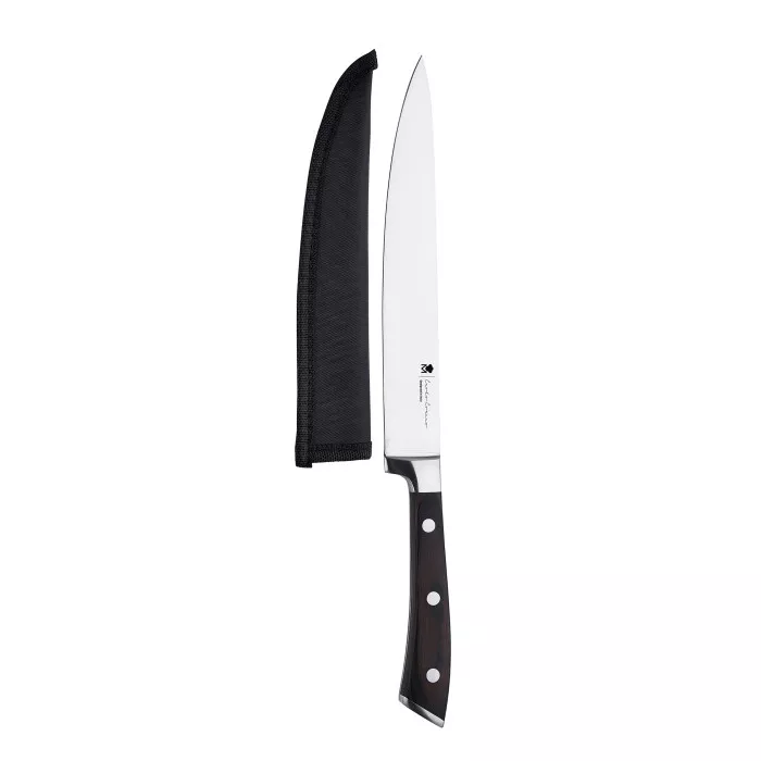 Ніж серії By Carlo Cracco, довжиною 20 см, виготовлений з нержавіючої сталі, забезпечує високу точність нарізання. Ручка з натуральної деревини додає ножу елегантності та комфортного утримання. Металічний колір поєднується з дерев'яним дизайном, надаючи сучасний вигляд. Ніж укомплектований чохлом для леза для додаткового захисту. Не рекомендується мити в посудомийній машині.]]>
