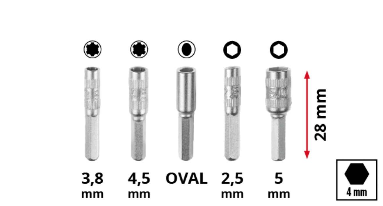 Біти Einhell HEX, PH, RIBE, SL, Spline, Torx, 28мм, кейс набір 33шт