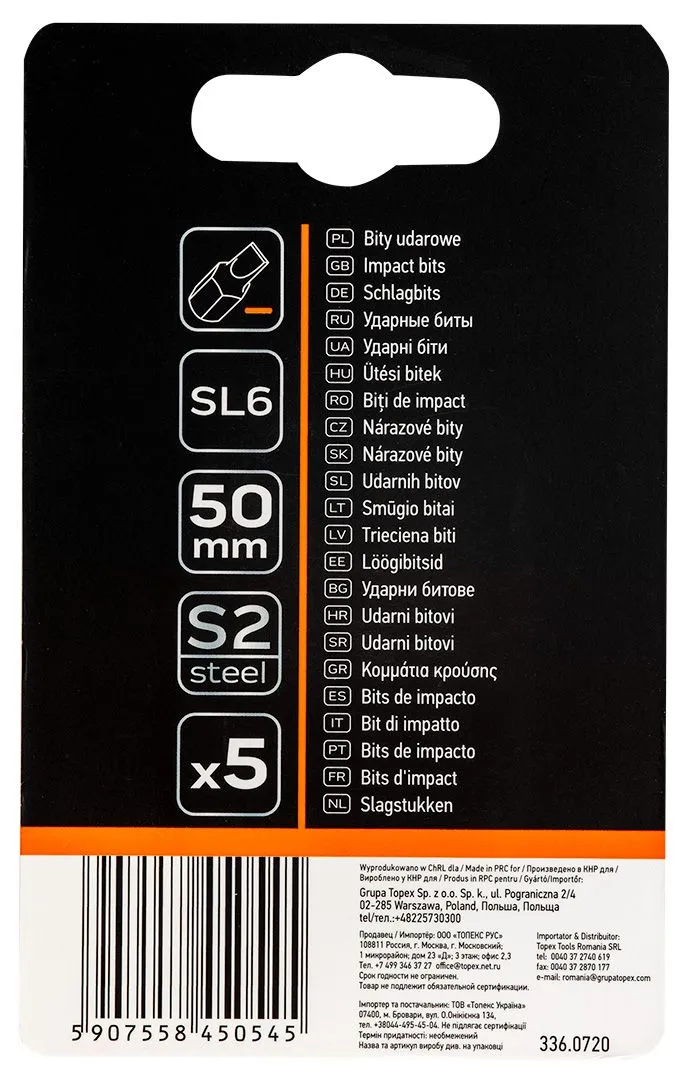 Ударні біти S2, 50 мм, 09-581, NEO, також відомі як наконечники, є набором з 5 професійних ударних біт типу SL6. Вони призначені для гайковертів 1/4”. Оснащені системою, що запобігає вислизанню наконечника з гнізда.