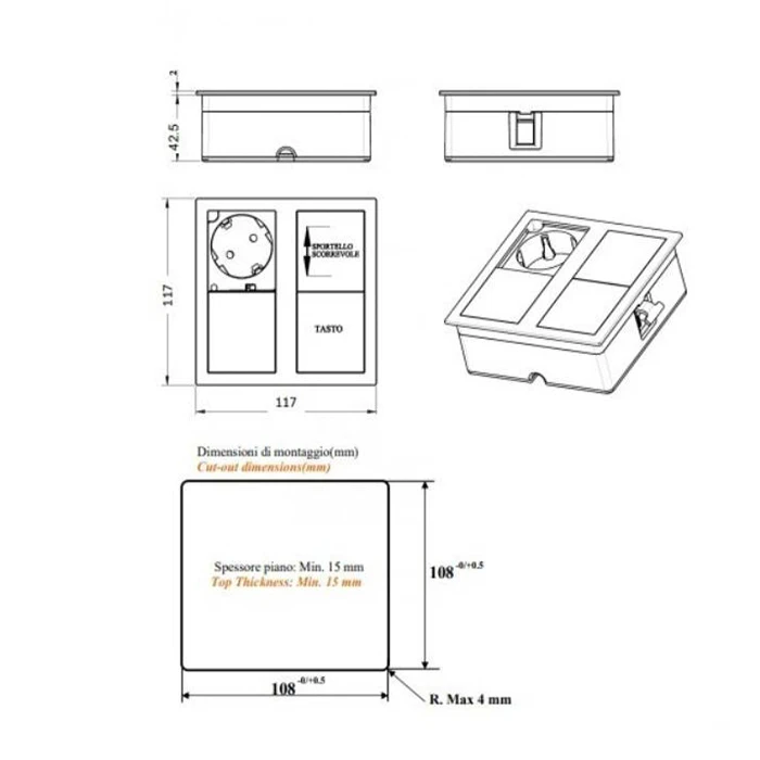 - Тип відкривання розеточних блоків З ковзаючою кришкою