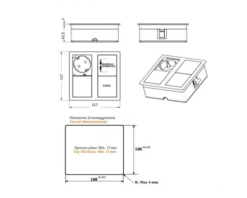 - Тип відкривання розеточних блоків З ковзаючою кришкою