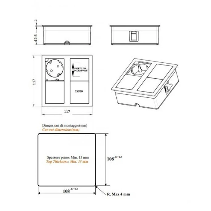 - Тип відкривання розеточних блоків З ковзаючою кришкою