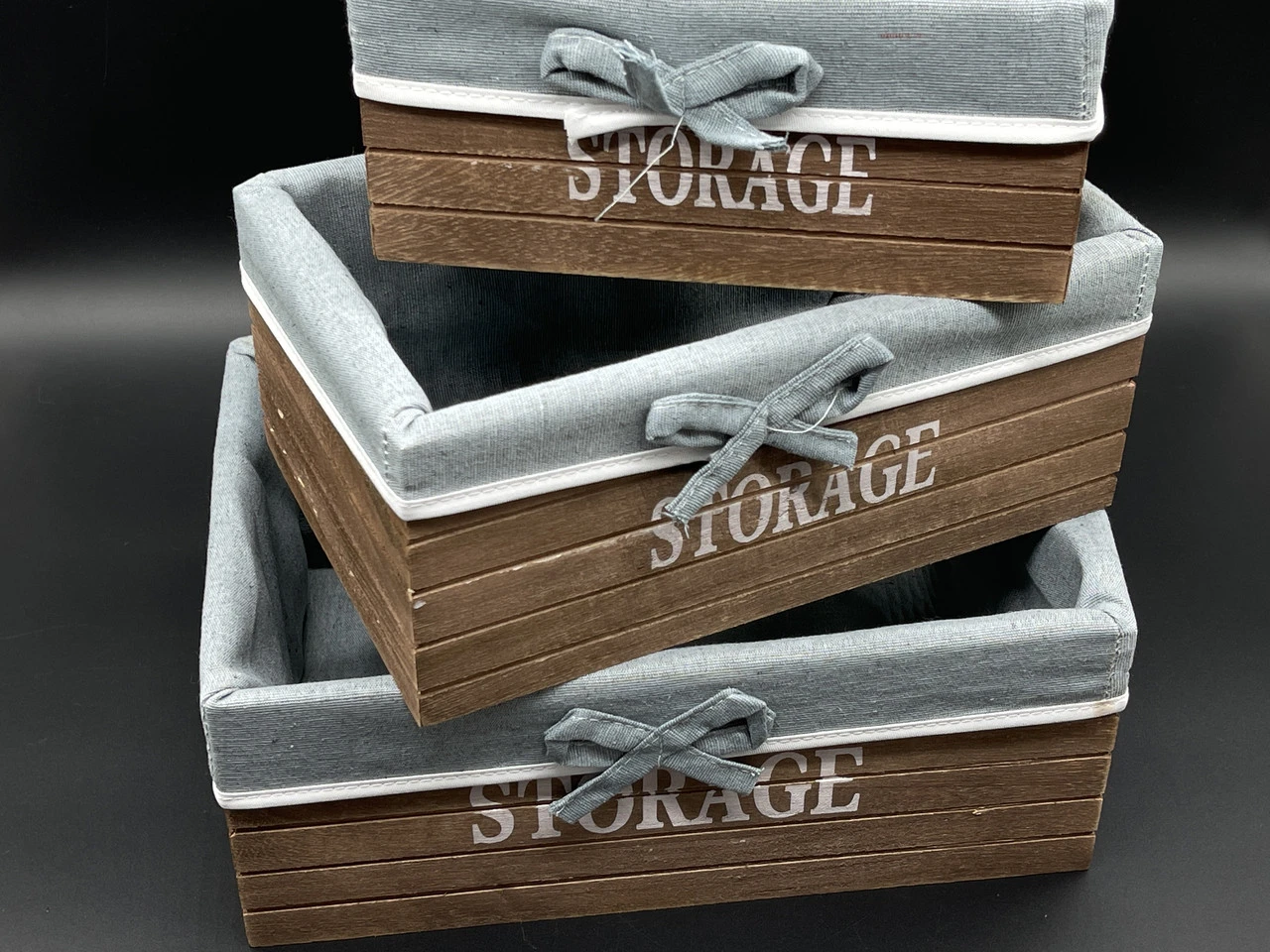 Ящик декоративний дерев'яний з тканиною, 28х19х11см, 3шт, Колір "коричневий"