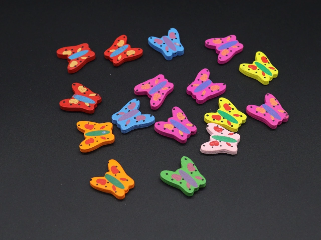 Гудзики дерев'яні декоративні, Метелик, 22х21мм, Колір "різнокольоровий"