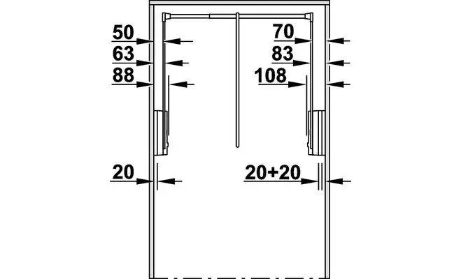 Дистанційна рама для гардеробного ліфта виготовлена з пластмаси чорного кольору. Застосовується для перекриття виступу двері, наприклад при вкладних дверях. Може штабелюватись.