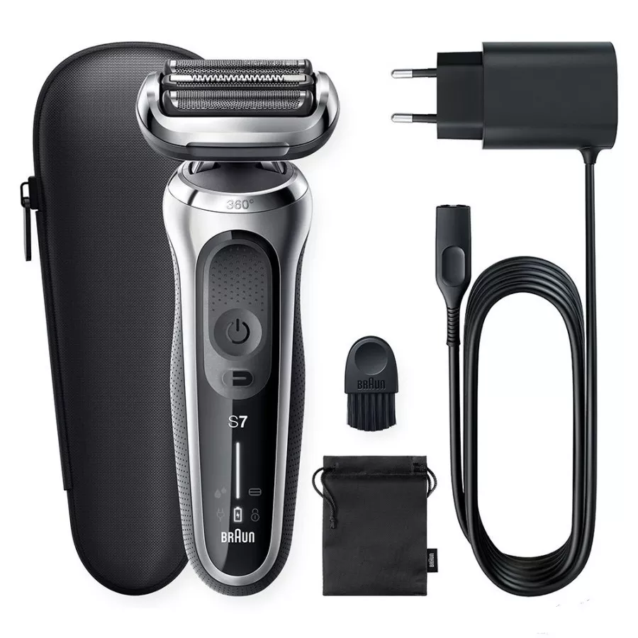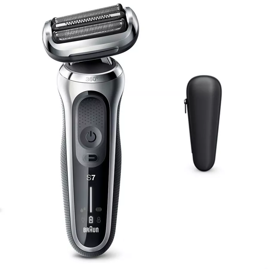 Braun Series 7 71-S1000s SILVER / BLACK - електробритва забезпечує гладке гоління навіть у важкодоступних місцях завдяки голівці, що обертається на 360°. Ефективний навіть при жорсткій щетині: технологія AutoSense аналізує щетину та регулює потужність залежно від її густоти, захоплюючи та підрівнюючи більше волосся при кожному голінні.