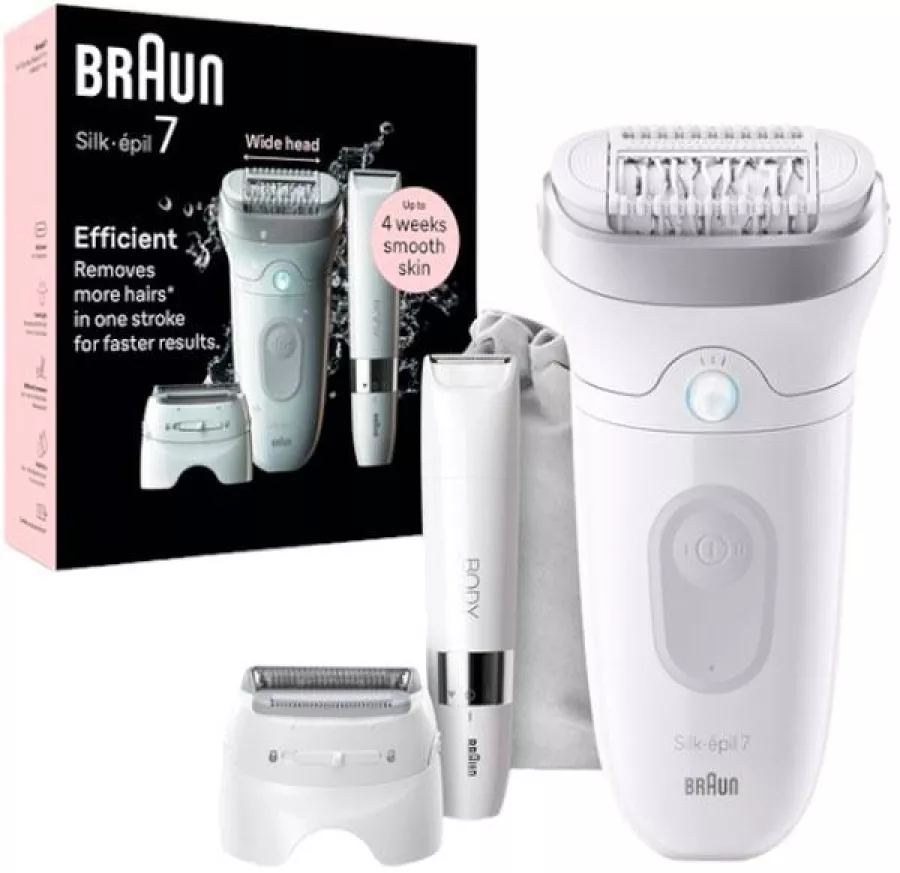 З Braun Silk-épil 7 ви можете насолоджуватися шовковисто гладкою шкірою до місяця в будь-якому місці і в будь-який час. Епілятор Wet&Dry оснащений широкою насадкою, яка охоплює великі площі та захоплює більше волосся з кожним рухом (проти Braun Silk épil 5). Цей акумуляторний епілятор Braun оснащений технологією пінцету MicroGrip, яка захоплює навіть найкоротші волоски (0,5 мм). Насолоджуйтесь шовковисто-гладкою, салонною шкірою та додатковим комфортом завдяки масажній роликовій насадці, яка може зменшити почуття болю. Вам більше не потрібно чекати, поки волосся відросте, як це можна зробити з іншими засобами для видалення волосся (наприклад, воском). Цей епілятор практичний у використанні та усуває необхідність трудомісткої епіляції чи візитів.