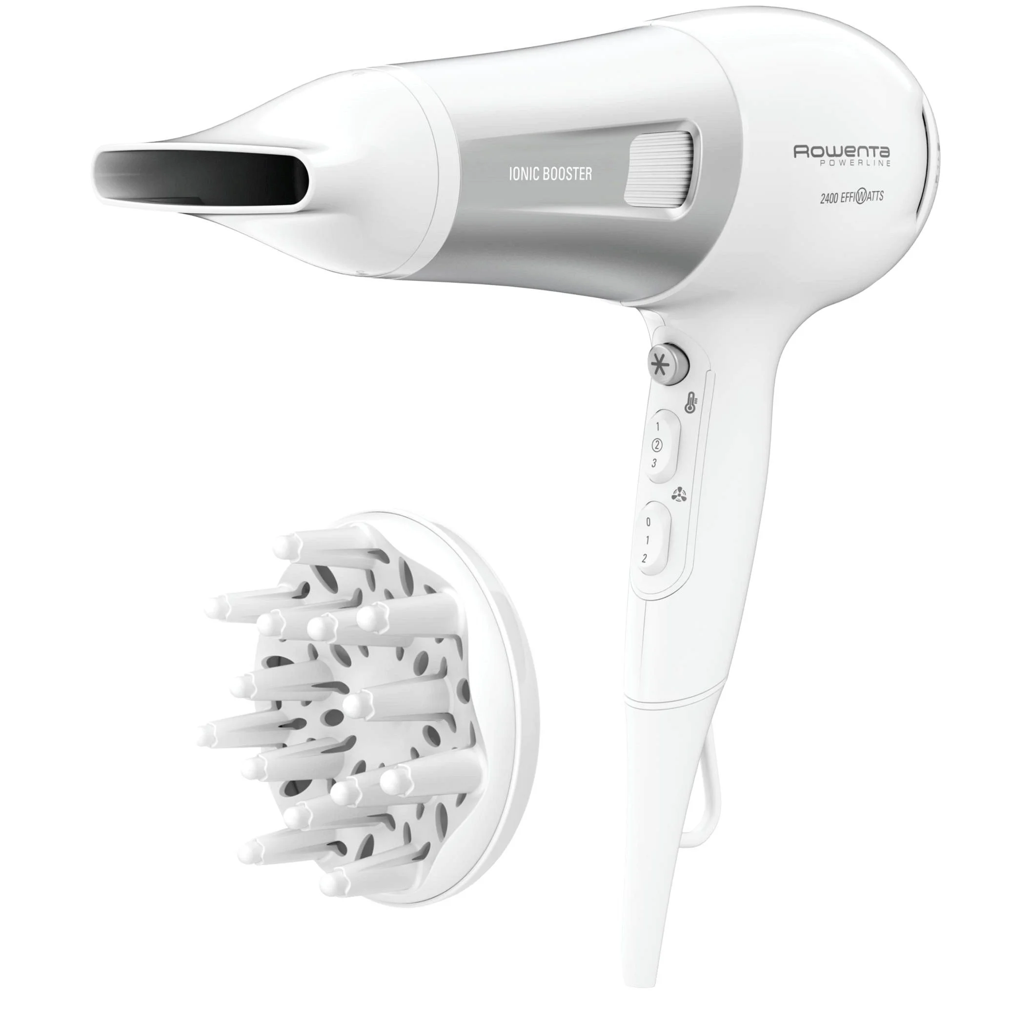 Фен Rowenta Powerline, 2400Вт, 3 режими, дифузор, іонізація, холодний обдув, біло-сірий