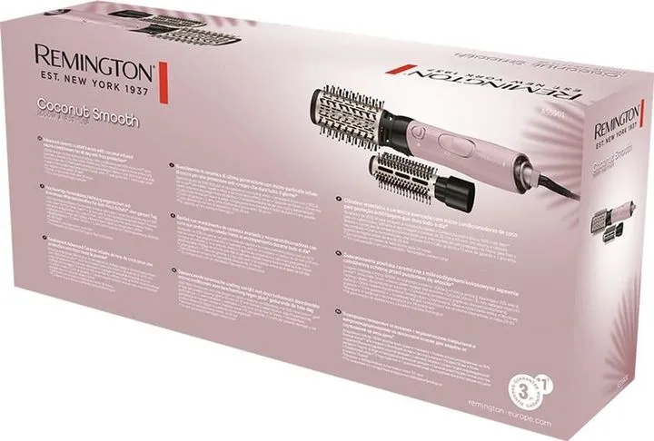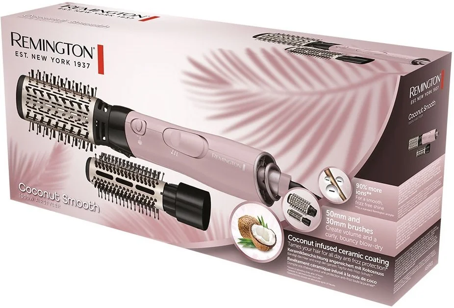 Фен-щітка Remington Coconut Smooth, 1000Вт, 2 режими, іонізація, холодний обдув, 2 насадки, чорно-ро