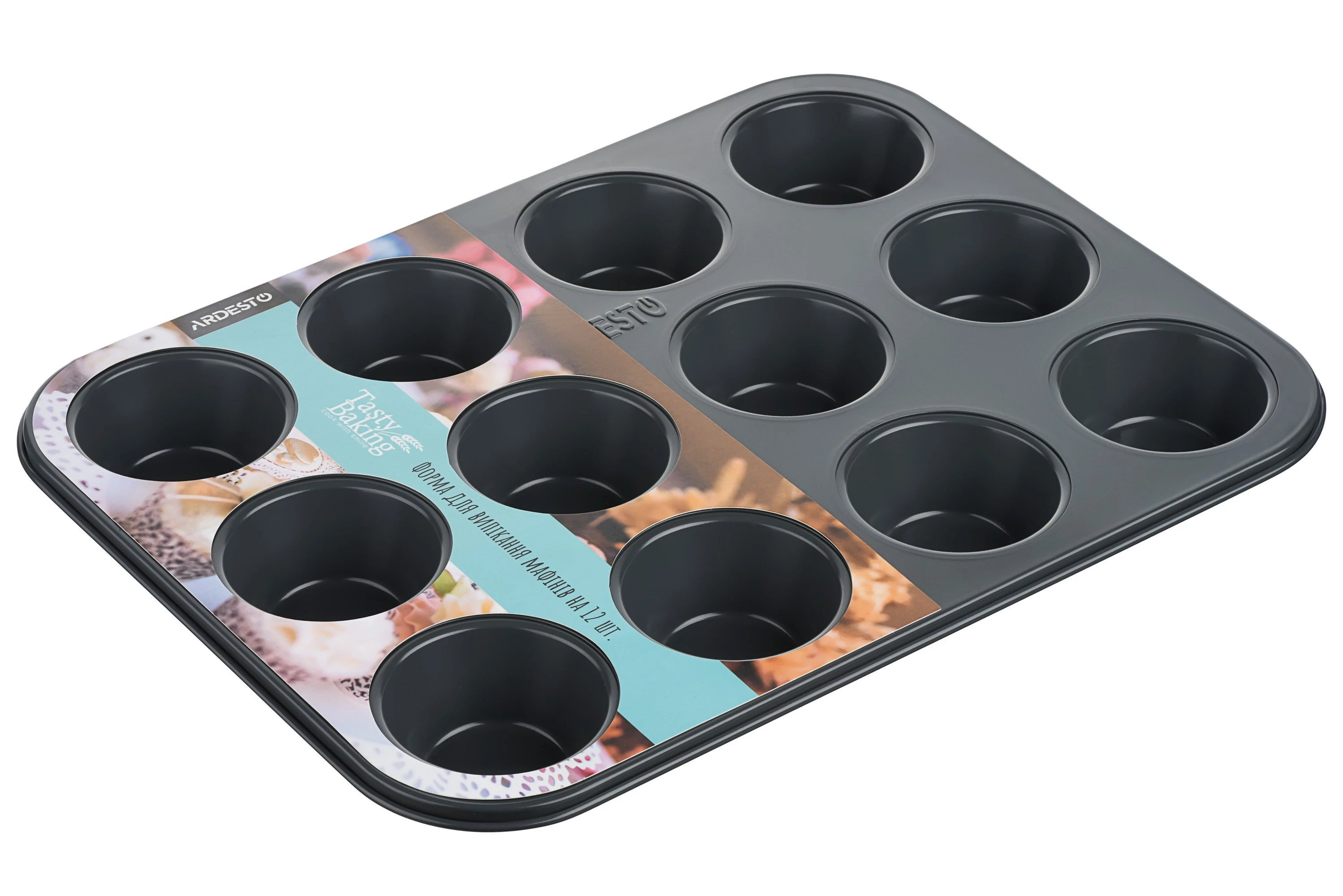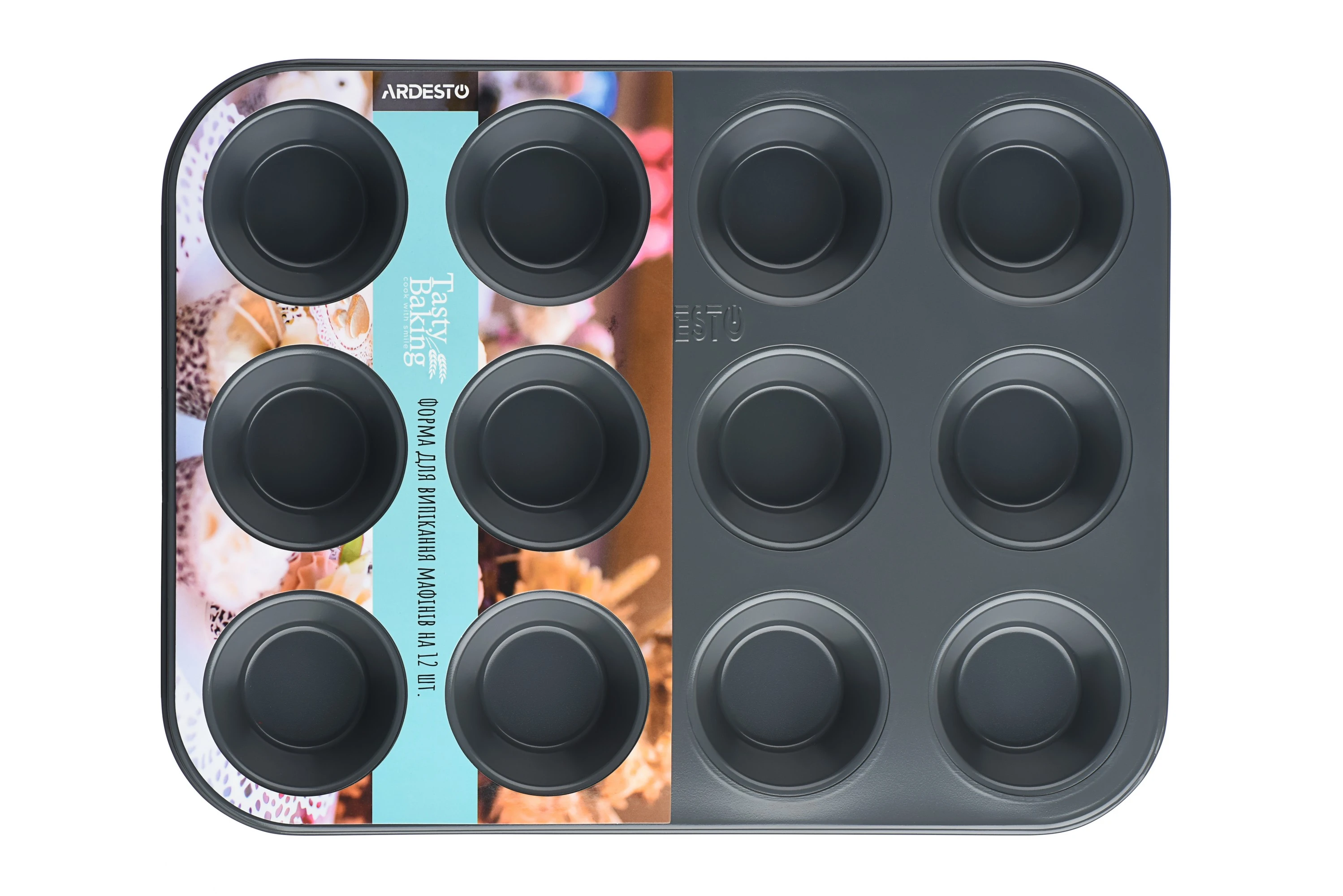 Форма для випікання мафінів Ardesto Tasty baking, 35х26.5х3см, 12шт, вуглецева сталь, сіро-блакитний