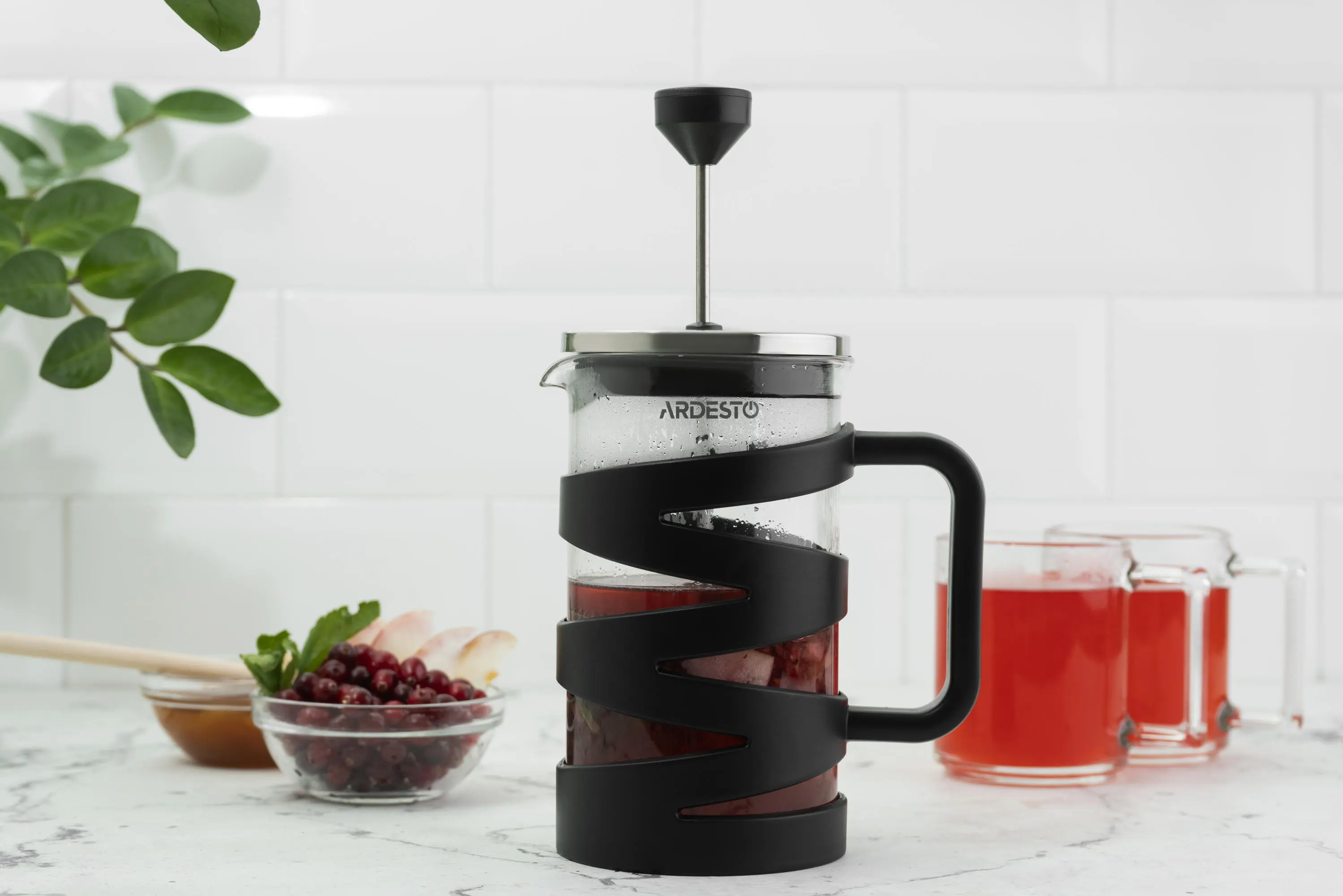 Френч-прес Ardesto Gemini, 600мл, боросилікатне скло, пластик, нержавіюча сталь, прозорий, чорний