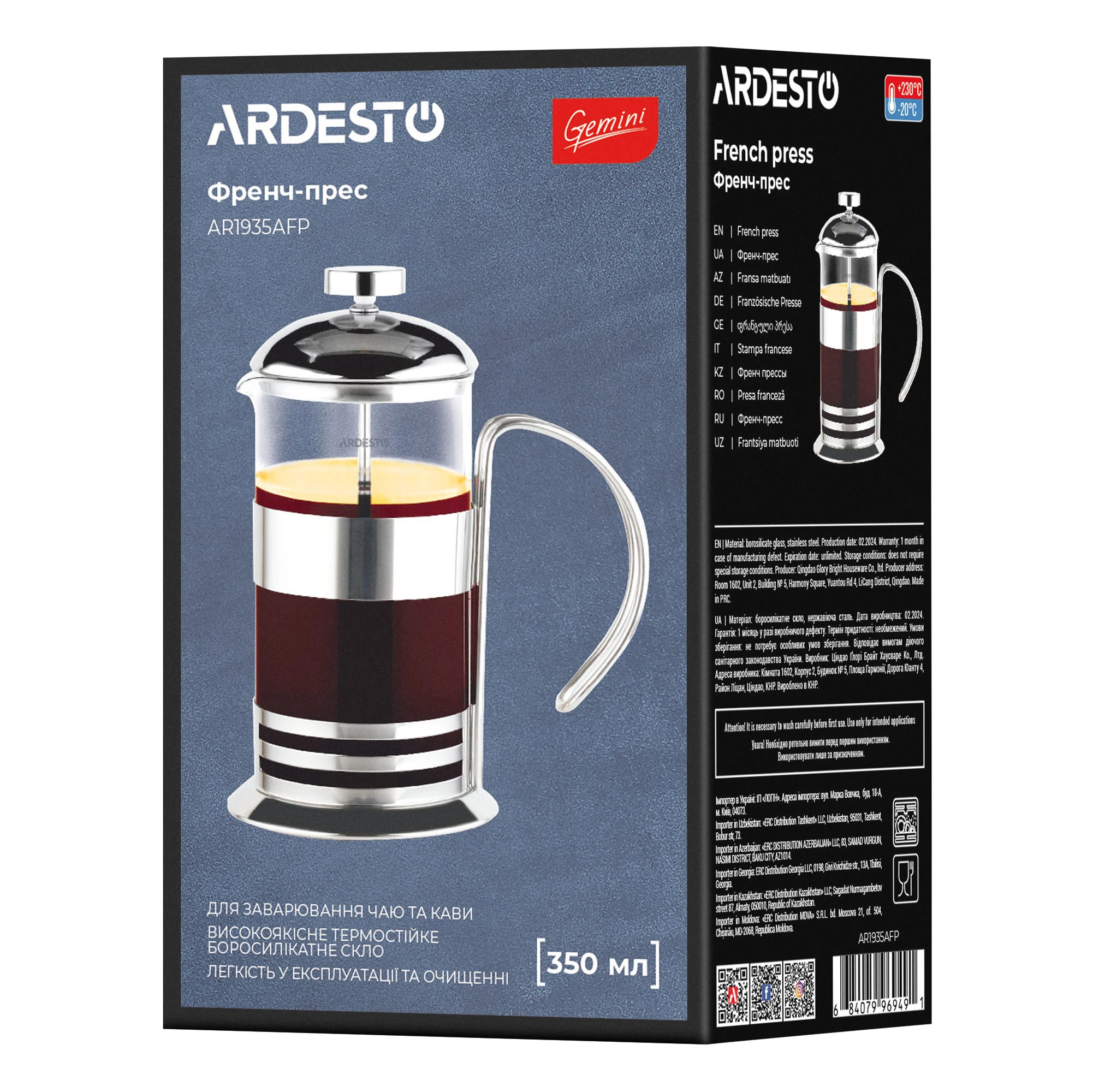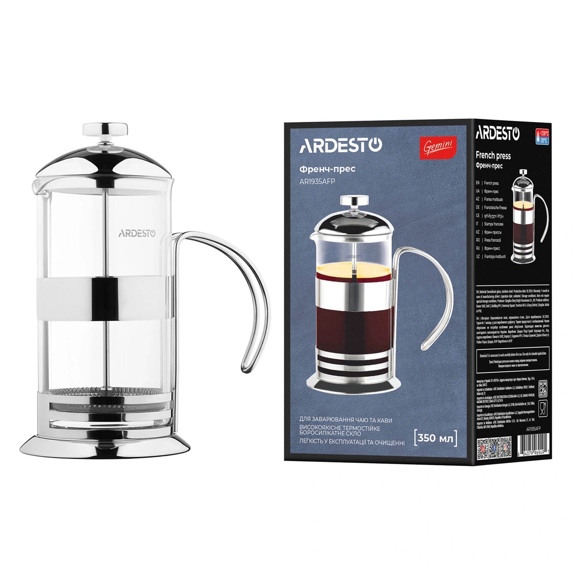 Френч-прес Ardesto Gemini Asti, 350мл, боросилікатне скло, нержавіюча сталь, прозорий