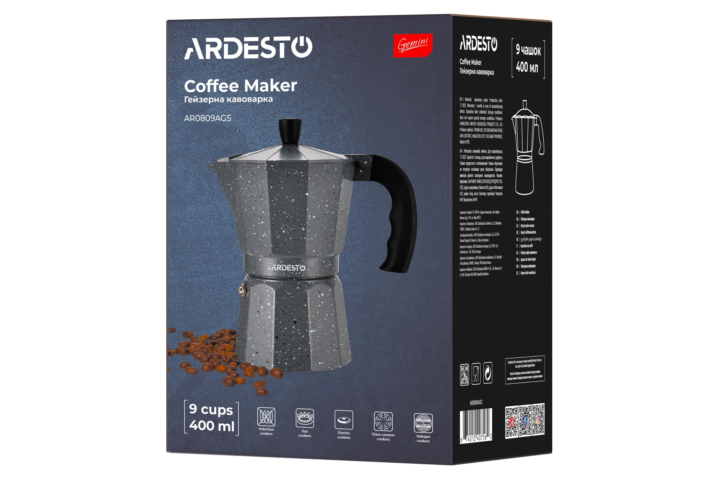 Гейзерна кавоварка Ardesto Gemini Molise, 0.4л, 9 чашок, алюміній, сірий