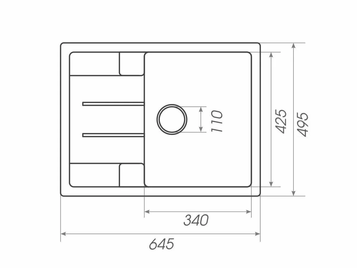 Розміри мийки – 645х495х200 мм, вага – 11 кг, сифон – євросифон з широкою горловиною, 110 мм.