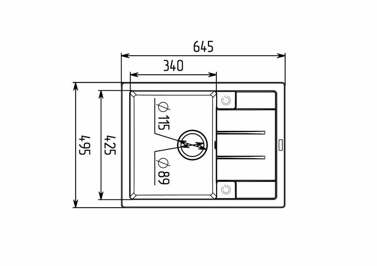 Розміри мийки – 645х495х200 мм, вага – 11 кг, сифон – євросифон з широкою горловиною, 110 мм.