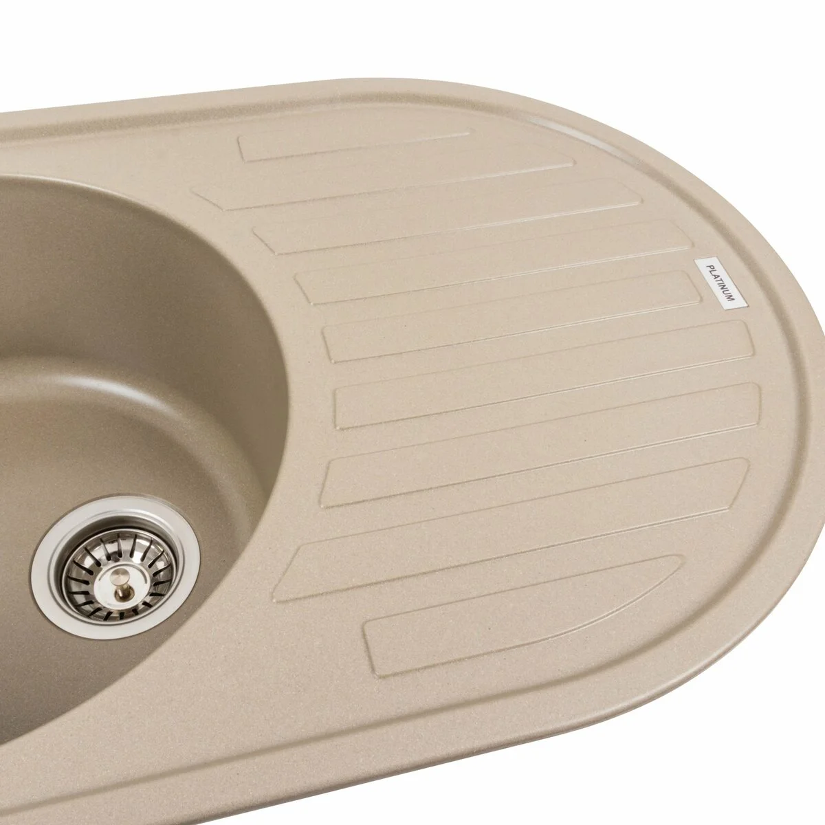 Гранітна мийка для кухні 7750 LIRA українського бренду Platinum - це стильна, врізна, овальна мийка, яка своїм виглядом чудово доповнить дизайн вашої кухні.